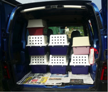 ^ Transporting the cats to the vet to be sterilized to control the population.